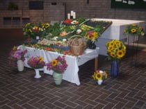 Bereits am Samstag hatte die Trachtengruppe mit viel Liebe den wundervollen Gabenaltar mit Früchten, Gemüse, frischem Brot und wunderbaren Blumen geschmückt – eine wahre Augenweide. In diesem feierlichen, gut besuchten Familiengottesdienst – im Obergeschoss der Kirche hatten sich auch unsere 3 - bis 6-jährigen Kinder mit ihren Eltern, Geschwistern und Grosseltern eingefunden – konnten wir auch unser neues Vortragekreuz «Lebensbaum» einsegnen, welches fortan unsere Gottesdienste und Prozessionen begleiten soll. Auch für den anschliessenden Apéro-Ausschank und den Verkauf der Gaben zugunsten der Haushalthilfe der Solothurnischen Landfrauen war die Trachtengruppe besorgt. Der Verkauf von Früchten und Gemüse ergab den schönen Betrag von Fr. 415.–.