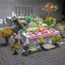 Die Trachtengruppe Dulliken hatte einmal mehr einen farbenfrohen, prächtigen Erntedankaltar zubereitet und war im Anschluss an den Gottesdienst bei nicht gerade einladendem Wetter für den Verkauf der Gaben verantwortlich. Dieser ging zugunsten der Aktion „Denk an mich“.