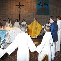 versammelt erlebten die Kinder in der Eucharistiefeier die Freundschaft und Liebe von Jesus in den Zeichen von Brot und Wein, dem Leib und Blut unseres Herrn und Heilandes Jesus Christus.