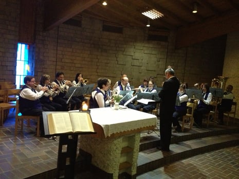 Nach dem Gottesdienst erfreute uns die Musikgesellschaft Dulliken unter der Leitung von Beat Simeon im Foyer des Pfarreizentrums noch mit einem Ständchen bevor jedermann zum gemeinsamen Grillieren eingeladen war.