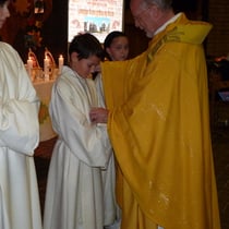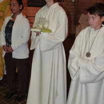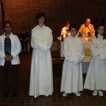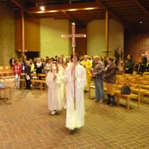 Eröffnet wurde unser 40-jähriges Kirchweihjubiläum am Samstagabend um 17.30 Uhr mit einem Familiengottesdienst, den Katechet Aurelio Tosato zusammen mit den Schülerinnen und Schülern der 2. OS, verstärkt mit weiteren Mitwirkenden der 4. bis 9. Klasse, zum Thema: „Lebendige Steine im Haus der Kirche“ vorbereitet und mitgestaltet hatten.