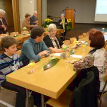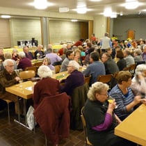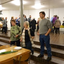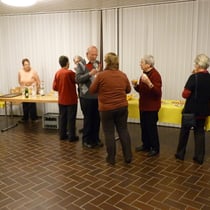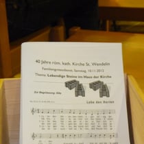 Die meisten Leute setzten sich aber bald an die schön dekorierten Tische und warteten gespannt auf den angesagten Film, den Balthasar Müller und Anton Schenker 1970 über den Zustand und Abriss unserer alten St. Wendelinskirche in mühevoller Kleinarbeit geschaffen hatten. Erwähnt seien hier vor allem die einmaligen Bilder über den Abbruch, der in allen Einzelheiten festgehalten wird.