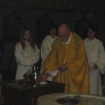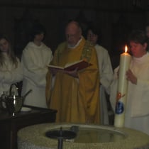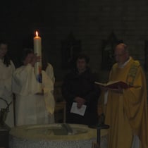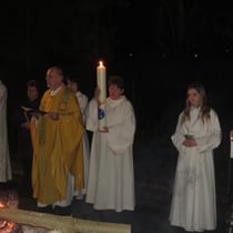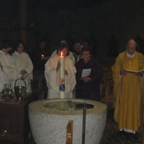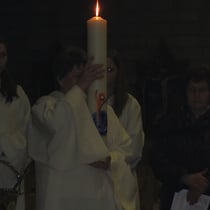Die festliche Auferstehungsfeier in der Osternacht - Höhepunkt des Kirchenjahres - begann mit dem Entzünden des Osterfeuers, der eindrücklichen Prozession mit der soeben entzündeten Osterkerze in die dunkle Kirche und dem vom Kantor Daniel Frey gesungenen dreimaligen „Lumen Christi“ – Licht Christi. Es folgte der Lobgesang des „Exsultet“, in dem es heisst: „Erfreue dich, o Erde, überflutet vom Lichtstrahl aus der Höhe; Licht des ewigen Königs umleuchtet dich! Wisse: Entschwunden ist allerorten das Dunkel“. Ein wahrhaft österlicher Hymnus, der die Augen und Herzen zum Leuchten brachte.