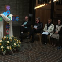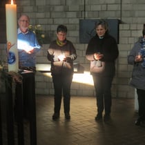 Nach dem Rosenkranzgebet vor dem ausgesetzten Allerheiligsten gestaltete die ökumenische Arbeitsgruppe ab 21.30 Uhr die ökumenische Gebetsnacht mit der Betrachtung von 8 Stationen des Dagerheimer Kreuzwegs. Dank der abwechslungsreichen Gestaltung der halbstündigen Sequenzen harrten durchwegs mehr als 12 Personen bis zum Ende am Morgen um 2.00 Uhr aus. Ein herzliches Dankeschön all denjenigen, die mitgeholfen und mitgewirkt haben. Einmal mehr war diese Gebetsnacht ein sprechendes Zeichen gelebter Ökumene in unserem Dorf.