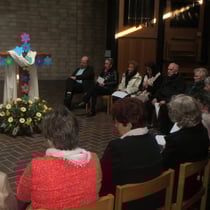 Am Ostermontagabend fand um 17.30 Uhr – als Fortsetzung und Abschluss der ökumenischen Gebetsnacht – in unserer Kirche eine Meditation zum Emmausweg statt. Noch einmal erfreuten sich über 20 Gläubige mit Tanz und Gesang an der Auferstehungsbotschaft und teilten anschliessend im Obergeschoss der Kirche miteinander das Brot in Agape.